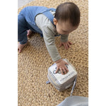 Ook zit er binnenin de kubus een belletje voor een leuk rammeleffect.